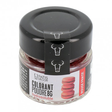 El colorante en polvo rojo fresa hidrosolubre de Patisdécor es adecuado para colorear productos de mazapán o fondant y para colorear en la masa de macarrones, pastillas, pasteles.