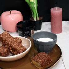 Esta pasta de praliné tiene un sabor perfectamente equilibrado con una mezcla de crujiente de almendra (29%) y avellana (31%).